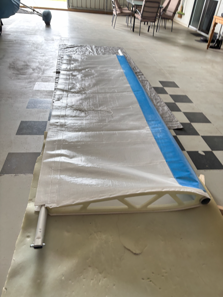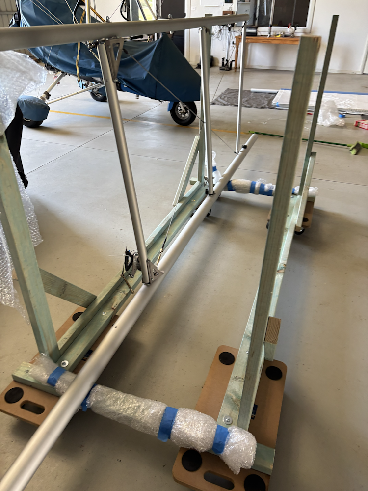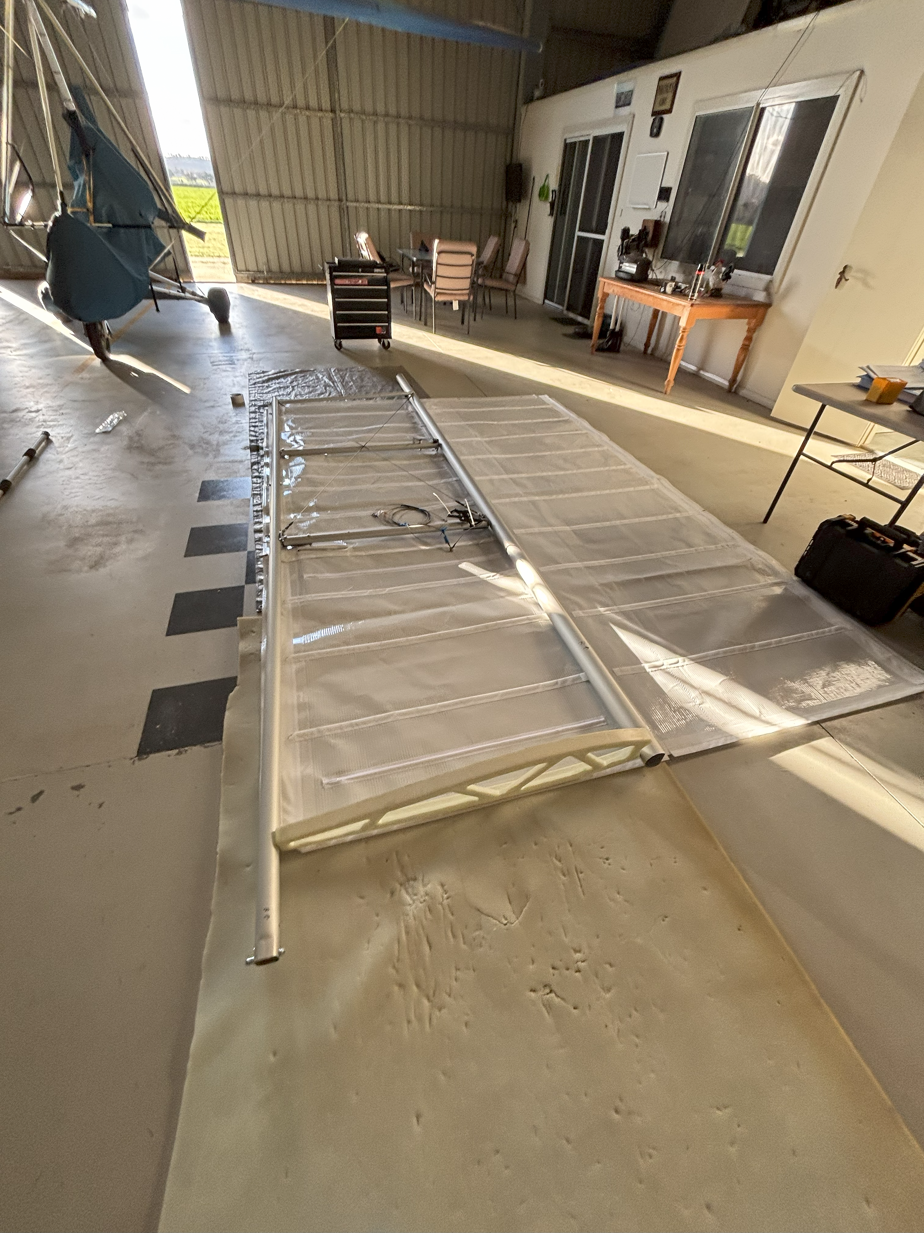 Wing sail installationAircraft: Bushcat 19-2226 Task Date: 18/10/2025 Builder: Malcolm Hardy Category: Wing Section: 66 Hours: 4 hrs Task: Built wing support so that I can tighten the lacing for the wing covering and for storage of the wings till attachment to the aircraft.  More...