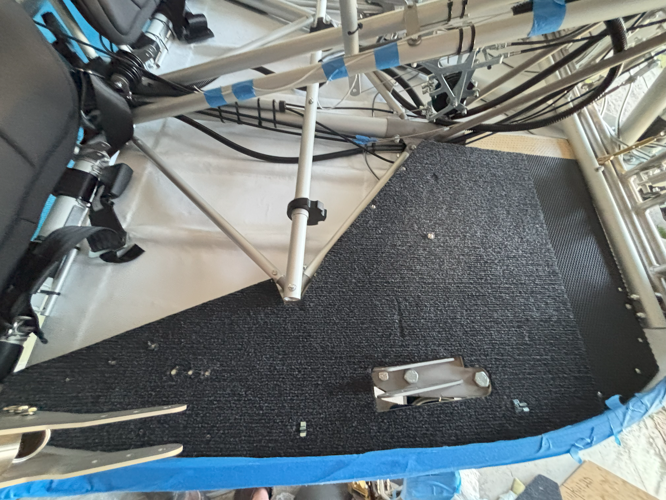 Aircraft: Bushcat 19-2226 Task Date: 05/10/2025 Builder: Malcolm Hardy Category: Fuselage Section: 55 Hours: 1 hr Task: Drilled holes in the right floorboard and installed pan pozi self tapping screws.  More...