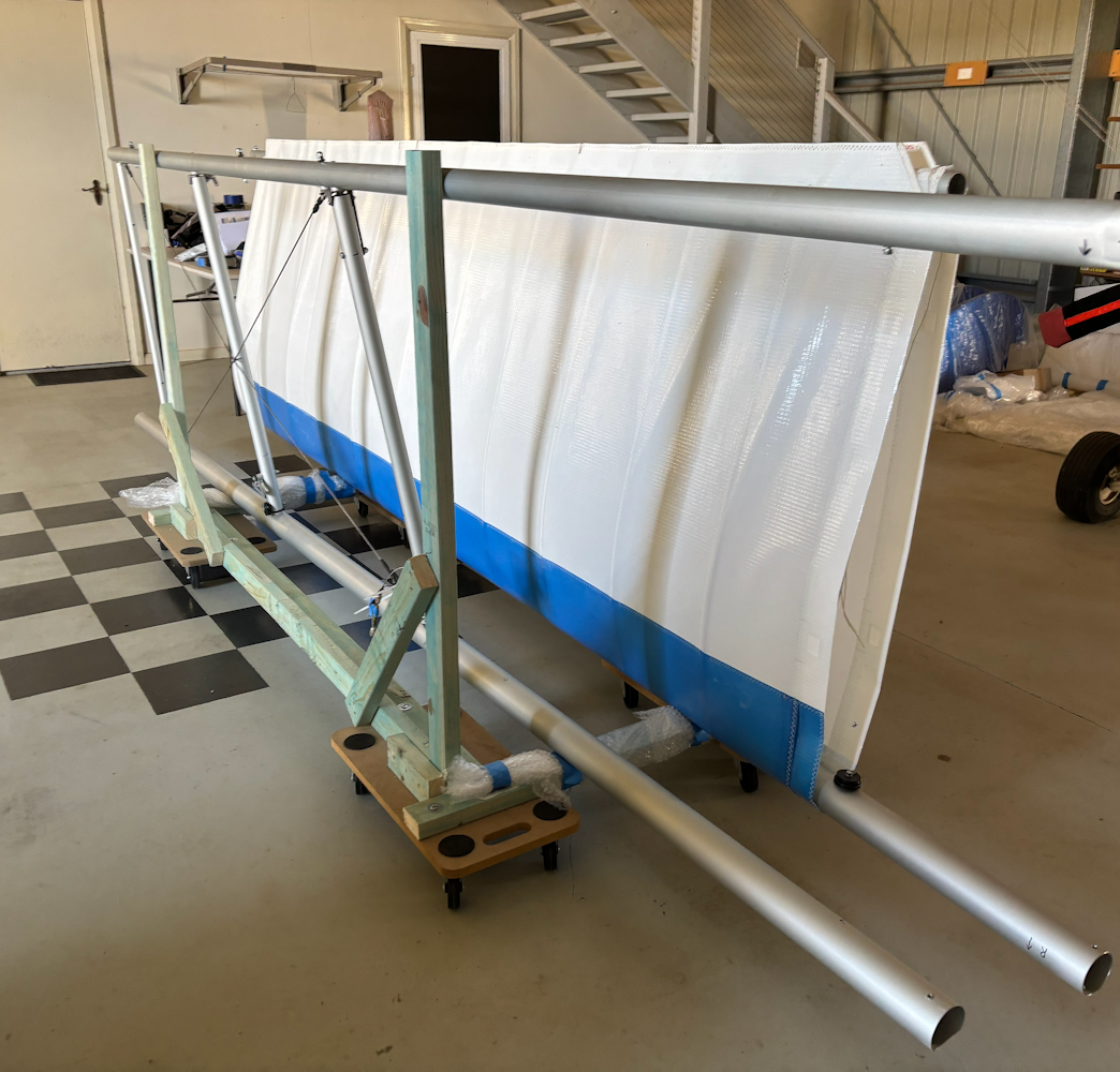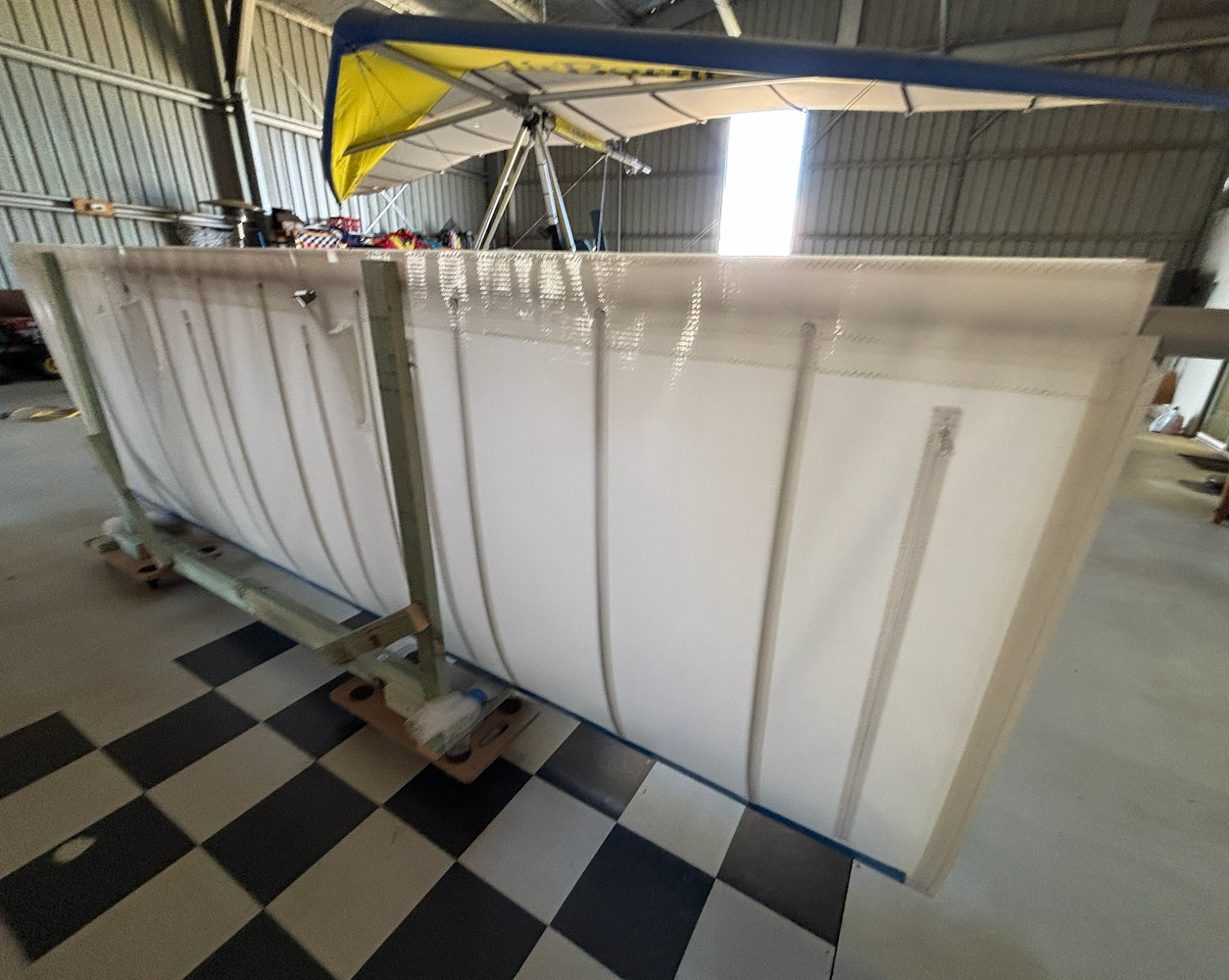 Aircraft: Bushcat 19-2226 Task Date: 23/11/2025 Builder: Malcolm Hardy Category: Wing Section: 66 Hours: 2.5 hrs Task: Install mylar leading edge into left wing and start lacing sail.  More... -