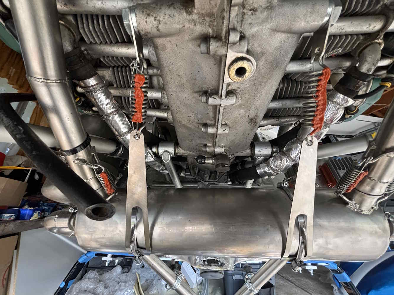 Aircraft: Bushcat 19-2226 Task Date: 19/12/2025 Builder: Malcolm Hardy Category: Engine Section: 103 Hours: 4 hrs Task: Install exhaust. Had to buy some copper grease for the joints.Lots of springs (16) and safety wiring to be done.  More... -